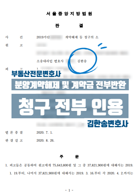 오늘은 분양계약과 관련한 분양계약 해제 및 계약금반환청구 사건(성공사례)을 소개드리려고 합니다.