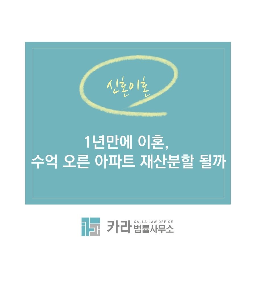 그런데 1년만에 이혼한 경우, 즉 단기이혼의 경우에는 재산분할이 인정될 여지가 많지 않습니다.