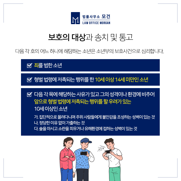 소년보호사건은 우리가 매스컴에서 접하는 미성년자의 강력범죄가 발생한 경우 뿐만 아니라, 친구와의 싸움, 학교폭력, 교내 왕따문제 등에 있어 폭행, 협박, 명예훼손 등 피해자 측의 고소로 인해 소년보호재판을 받게 되는 경우도 있습니다. 생각보다 다양한 상황에서 소년보호사건으로 이어질 수 있으므로 경험많은 소년법사건전문변호사의 도움을 구할 필요가 있습니다.