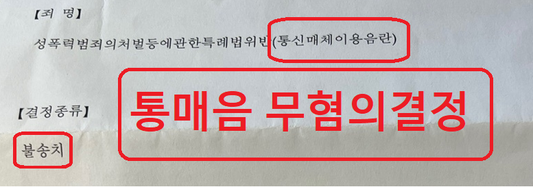 결국 경찰에서는 이러한 사항들을 고려하여 피해자에게 성적 수치심을 유발한 채팅이 아니라는 점, 피의자가 범죄 전력이 없는 초범이라는 점, 증거가 불충분 한 점 등을 반영하여 통매음 혐의에 대하여 무혐의 결정(불송치결정)을 결정하였습니다.