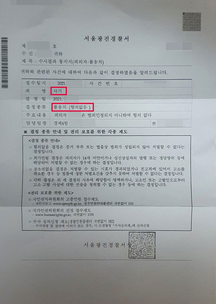 때문에 만약 사기죄로 법적인 문제가 발생하게 된다면 법률전문가의 도움을 받아 초기 수사단계에서부터 적극적인 대응을 하길 추천드립니다.
