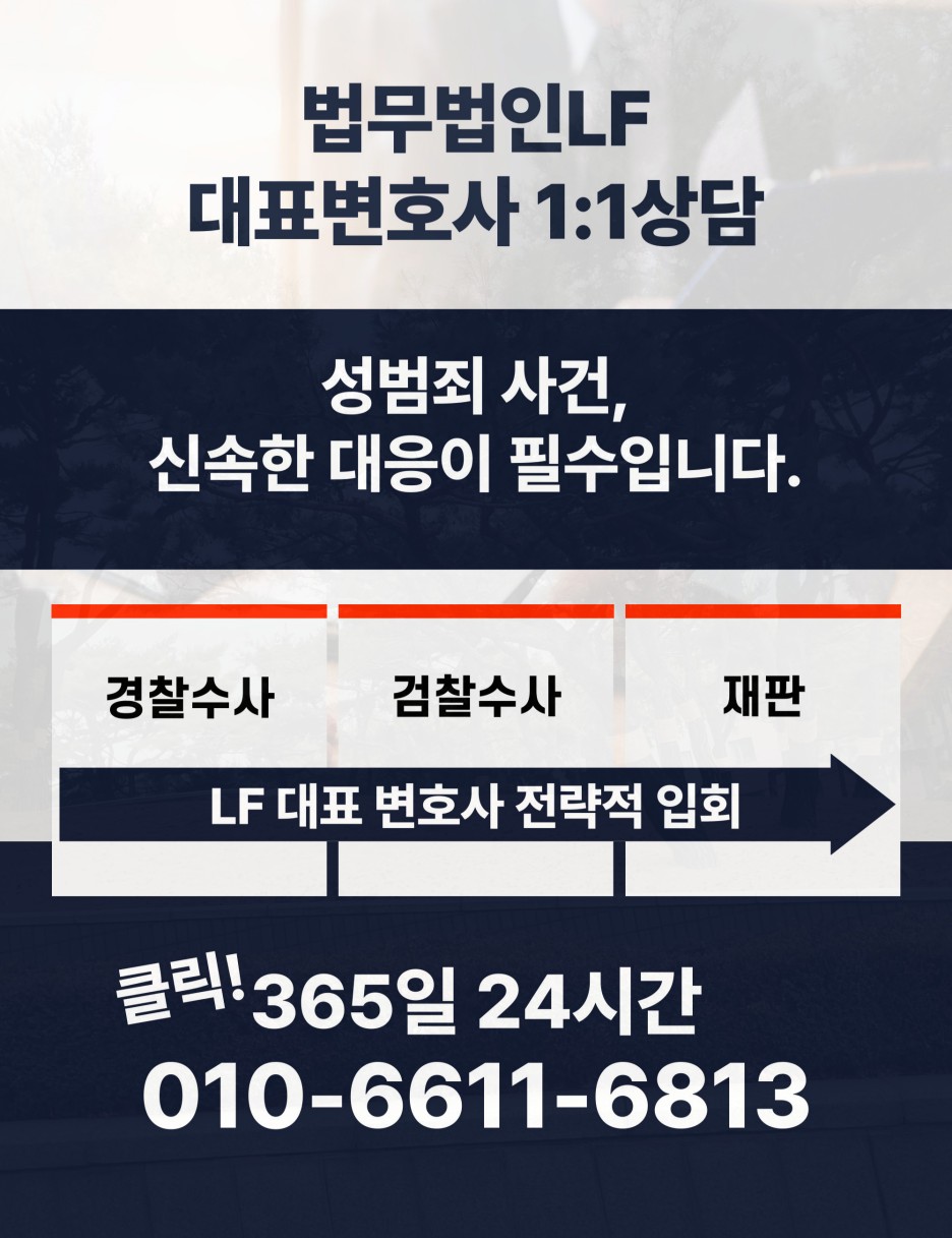 성범죄 조사는 제대로 준비하지 않을 경우 불리한 상황이 되기 쉬워집니다. 그렇기에 수시기관으로부터 조사를 받게 되는 상황이라면 무엇보다 조속한 시간 내에 법조인의 조력을 요청하는 것이 좋습니다.