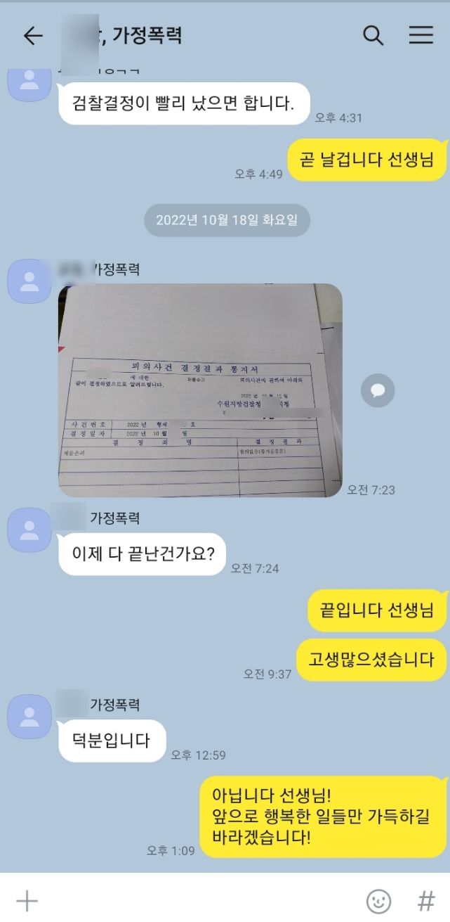 의뢰인으로서는 기소유예 처분이 나와도 직장에서 인사 상 불이익을 받지만 혐의없음 처분만 나온다면 직장에서 아무런 불이익을 받지 않을 거라며 좋아하셨습니다.