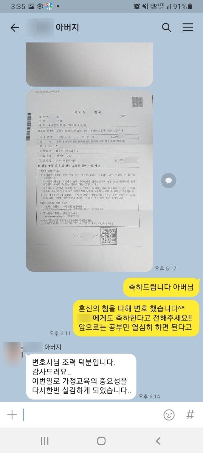 아버님께도 위와 같은 제 결론을 말씀드렸고, 무혐의는 생각도 하지 않으셨던 아버님께서는 제 결정을 매우 좋아하셨습니다.