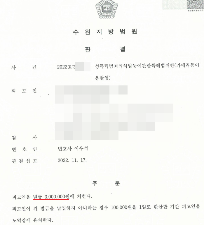 합의 교섭 과정에 여러 난관이 있었으나 다행히 피해자의 합의를 얻어낼 수 있었고, 피고인은 벌금형으로 이 사건을 마무리 할 수 있었습니다.