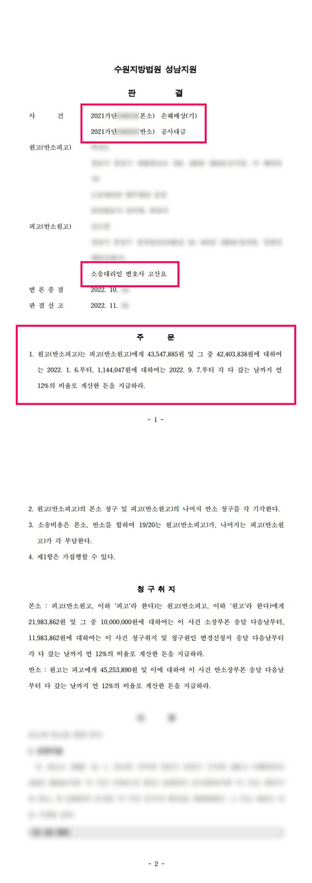 의뢰인은 법률사무소 로진의 조력으로 미지급 받은 공사대금 원금에 지연이자까지 더하여 지급받을 수 있게 되었습니다.