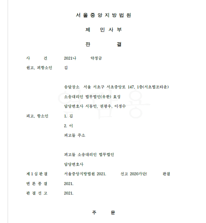 저는 즉각 피고들을 상대로 투자원금 및 별도의 손해에 대한 약정금청구소송을 제기하였고 항소심까지 가는 분쟁 후 최종 승소 확정되어 피고들로부터 투자원금을 되찾았습니다.