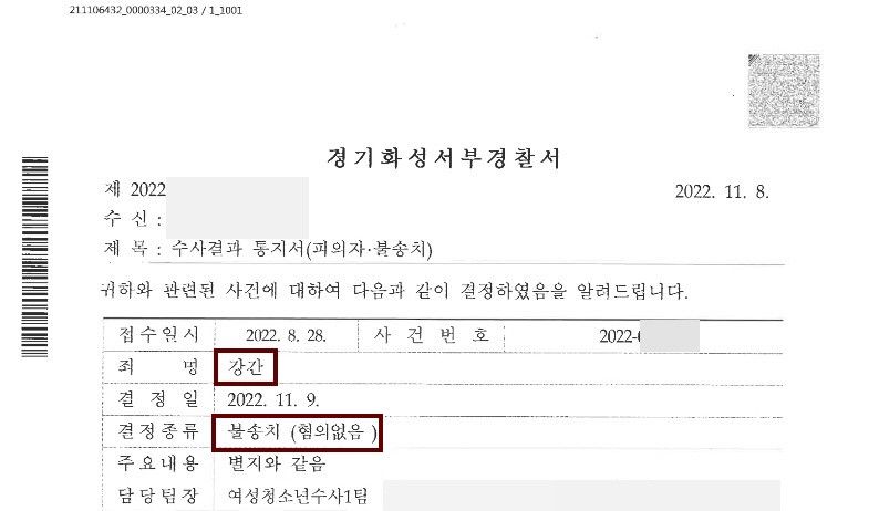 수사관도 '피의자가 피해자의 의사에 반하는 정도의 유형력을 행사하여 간음한 것으로 볼 여지가 있다.'라며 일부 강제성이 수반되었을 가능성은 인정하였지만, 결과적으로 혐의없음 결정을 하였습니다. 담당 수사관님께서 고심한 흔적이 느껴졌습니다. 한편으로는, 이 사건은 유죄와 무죄가 한 끗 차이밖에 되지 않았던 사건임이 새삼 더 크게 느껴졌습니다. 의뢰인이 기뻐하고 안심하는 모습을 보면 저 역시도 매우 보람을 느낍니다.
