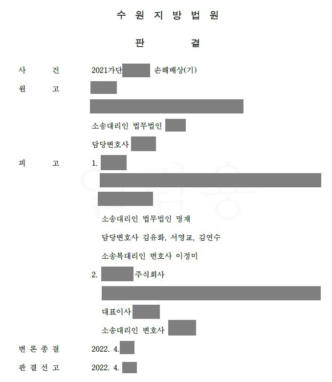 법원은 상가에 설치된 위반건축물 철거공사를 위해 영업을 하지 못한 기간(15일)의 카드매출 손실액의 70%인 308만원의 손해배상만을 인정하고, 스프링클러 파손으로 인한 손해배상 청구에 대해서는 원고의 청구를 모두 기각하는 판결을 선고하였습니다. 이로 인해 의뢰인은 임차인의 4,476만원 청구 금액 중 약 7%의 금액만을 배상하고, 오히려 임차인인 원고로부터 소송비용(변호사)의 일부를 돌려받을 수 있게 되었습니다.