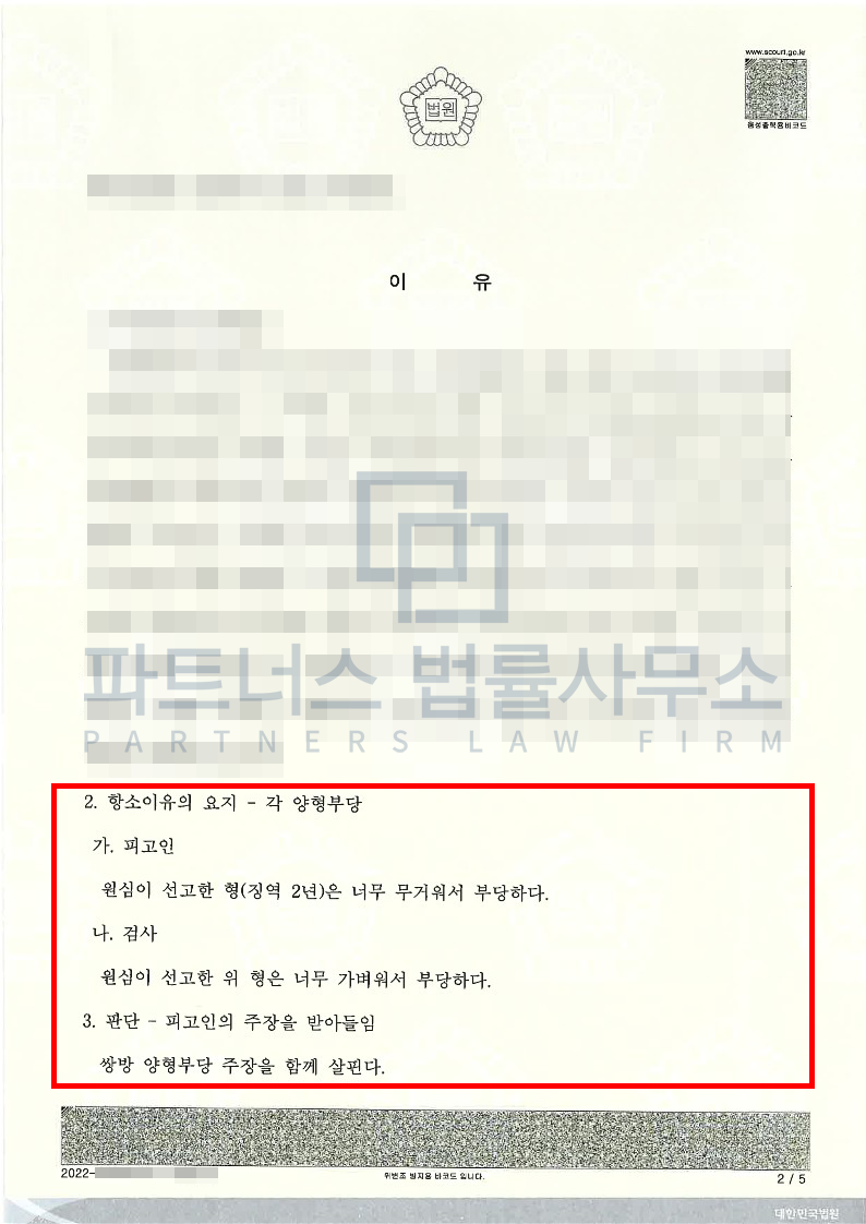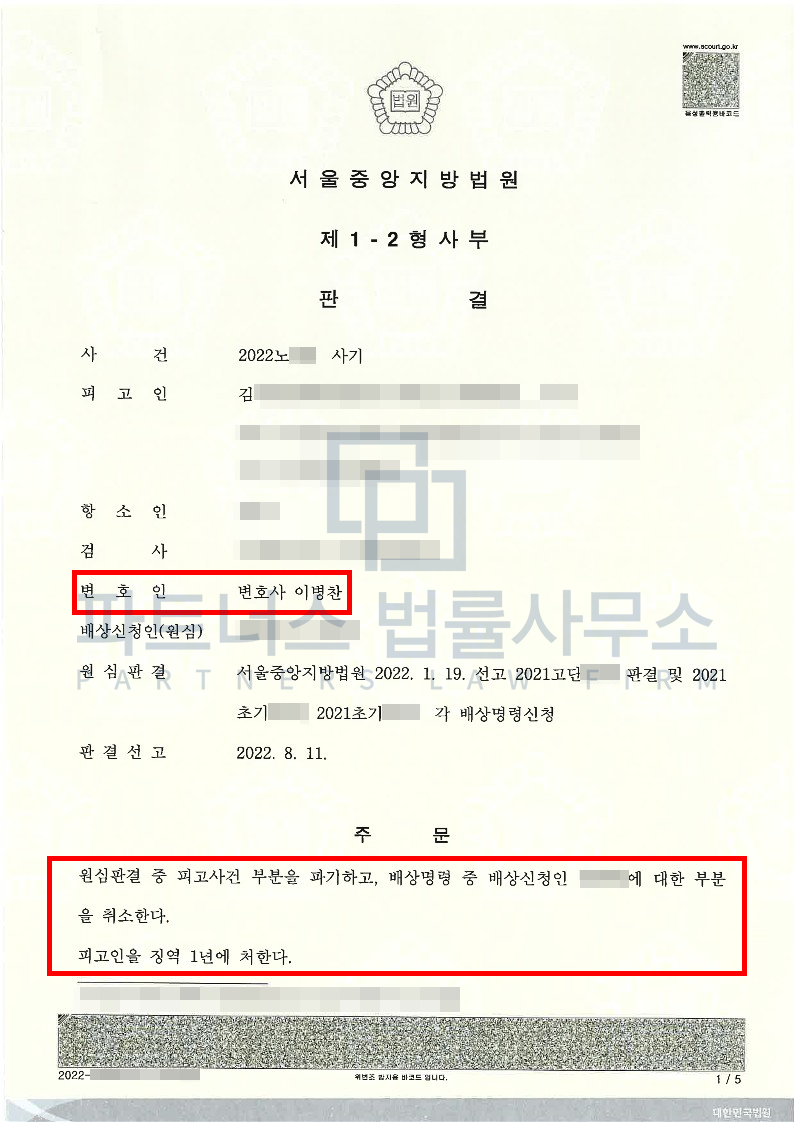 의뢰인의 경우 지인의 추천으로 시작한 아르바이트가 결국에는 보이스피싱 현금수거책 일을 한 것이 되어 1심에서 실형 2년을 선고 받고 저희 사무실을 찾아주셨습니다. 피해자와의 합의가 필요한 시점에 생활비도 빠듯한 가족들의 경제 상황에서 이 상황을 어떻게 해쳐나갈 지 논의를 한 끝에 피해자 4명 중 피해 금액이 큰 2명을 무조건적인 설득을 통해서 합의를 이루어 내자는 목표를 가지고 거의 3개월에 걸친 설득 끝에 피해 금액의 극히 일부분을 지급하고 합의서를 받아내는 것에 성공하여 결국 항소심에서 1년의 감형을 이끌어 내는 것에 성공하였던 사안입니다.
