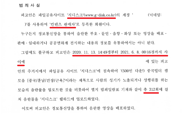 성소수자 A씨는 '지디스크' 웹하드에서 '컨텐츠 판매자'로 등록하여 약 7개월 동안 총 312회에 걸쳐 음란물을 업로드하였습니다.