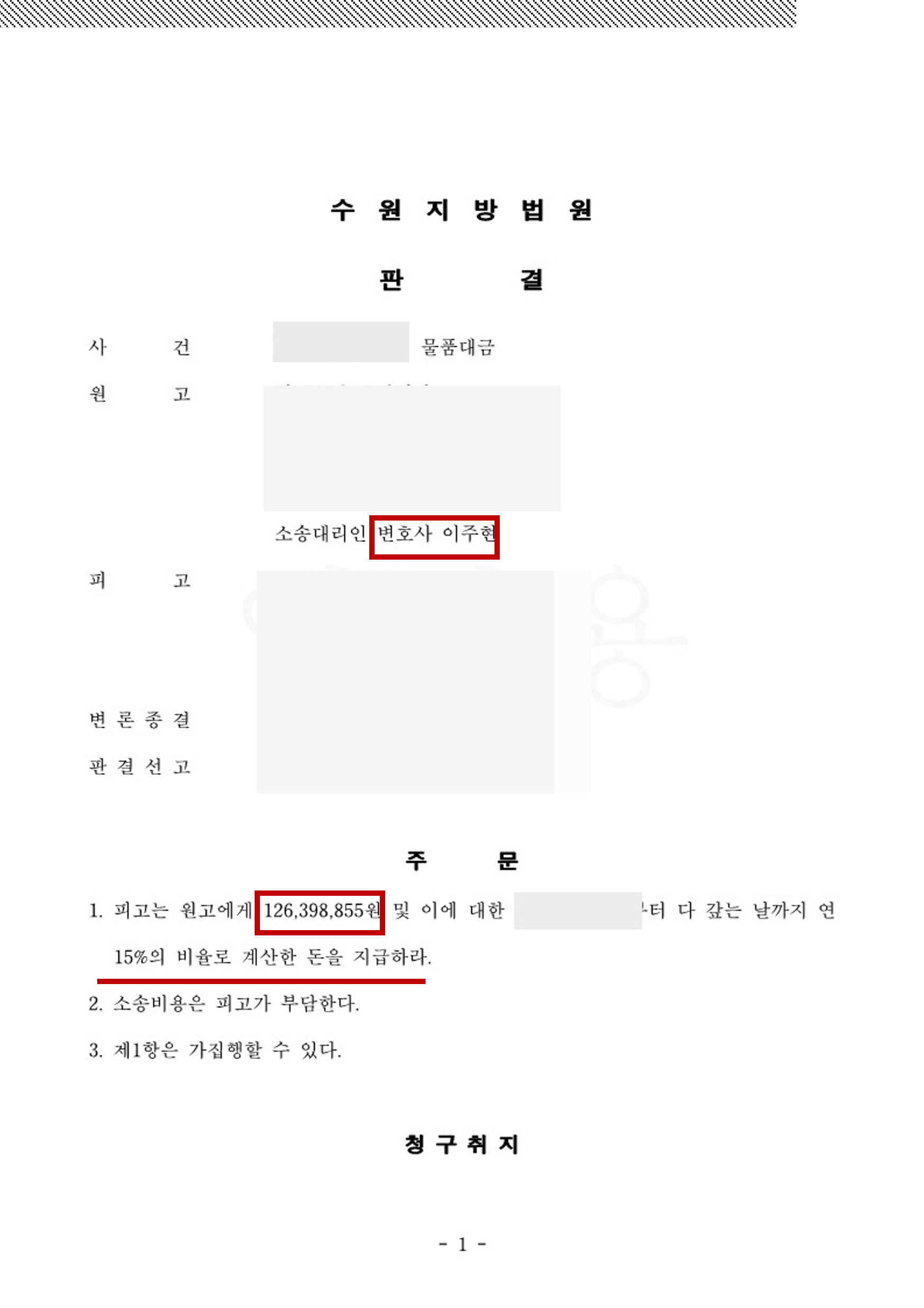 채권자에게 채무자와의 사이의 계약서 및 전자세금계산서 등 자료 등이 충분하였기에 소송적인 문제보다는 추심적인 면을 중점적으로 고려하였고, 이에 대형건설사와 채무자 사이의 공사관계상 아직 기성고 대금이 지급되지 않은 것을 고려하여 채무자의 대형건설사에 대한 채권 가압류를 진행하였습니다. 그리고 상대방의 하자 주장과 관련하여서는 감정결과상 다툼 및 법리 다툼을 통하여 최대한 금액을 낮추는 방향으로 진행하여 결국 소송을 승소로 이끌었고, 대형건설사에 대한 추심으로 채권액을 전액 회수할 수 있었습니다.
