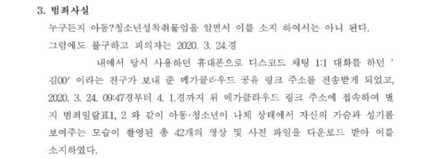 대학생 A씨는 고등학교 2학년 때인 2020. 3. 24.경 친구와 디스코드로 대화를 하던 중 친구로부터 불상의 메가클라우드 계정으로 연결되는 링크를 전송받게 되었습니다. A씨는 호기심에 링크를 클릭하여 접속한 뒤 그곳에 있던 아동·청소년성착취물을 자신의 메가클라우드 계정으로 들여오기하였고, 이후 따로 삭제하지 않고 계속하여 소지하였습니다.