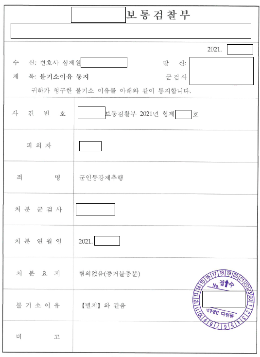 안녕하세요. 심제원 변호사입니다. 오늘은 군인등강제추행 사건에서 혐의없음으로 군검찰 단계에서 종결한 사건을 소개합니다.