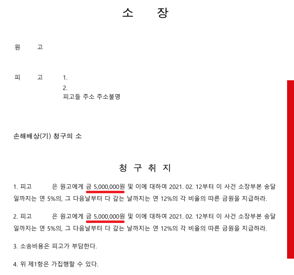 A씨는 그렇게 끝나는 줄로 알았지만, 어느 날 B씨가 500만 원의 손해배상을 청구했다는 내용의 소장을 송달받게 되었습니다.