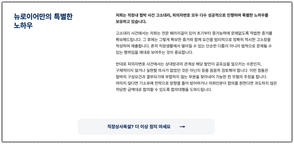 ![[폭행/협박] #직장내 협박](/_next/image?url=https%3A%2F%2Fd2ai3ajp99ywjy.cloudfront.net%2Fuploads%2Ftitleimage%2Foriginal%2F5c29c3008e4b2ec799673264-original.jpg&w=3840&q=75)