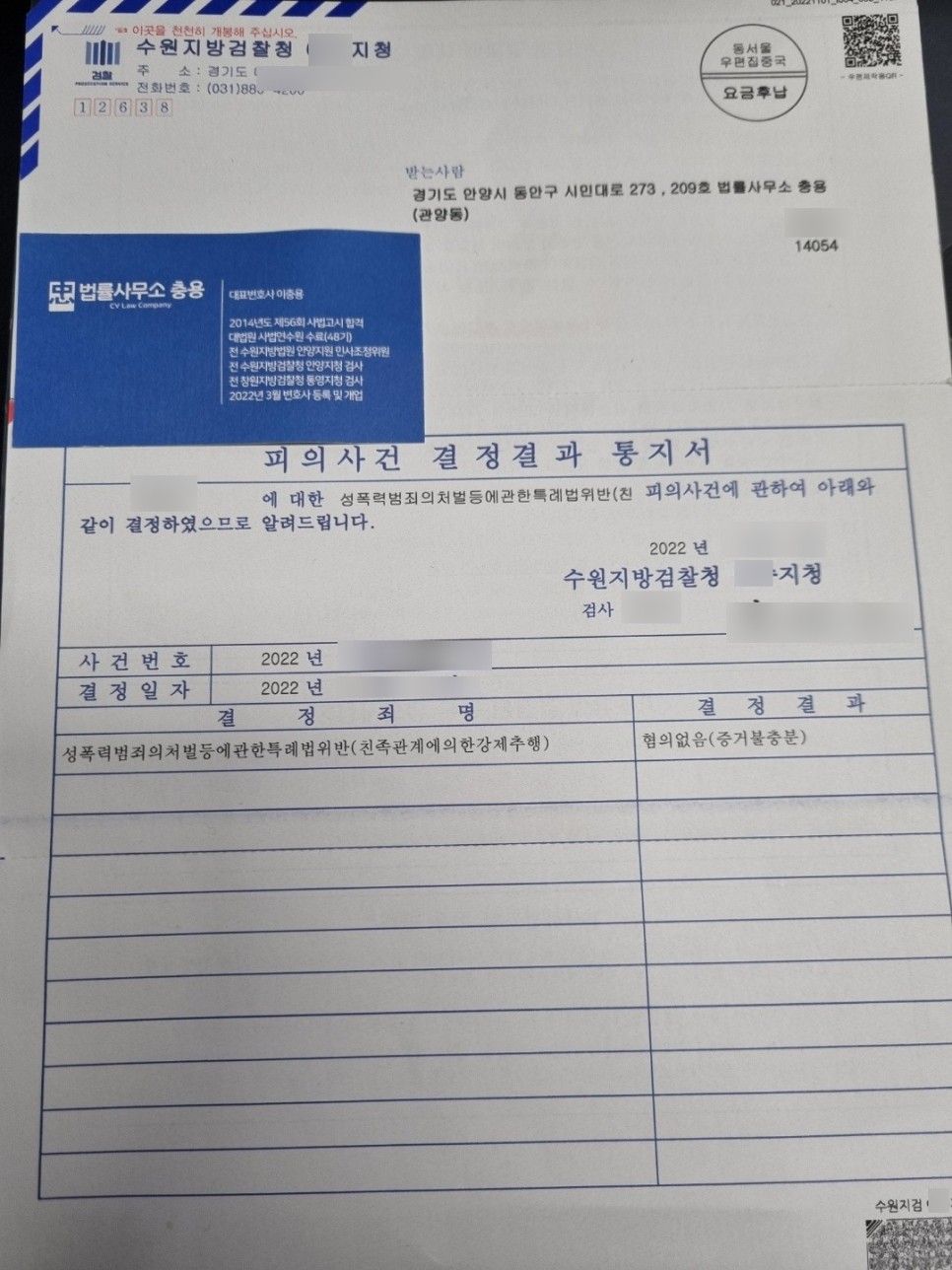 법정 다툼까지 예상했지만, 다행히 검찰로부터 증거불충분 불기소(혐의없음) 처분을 받았습니다.