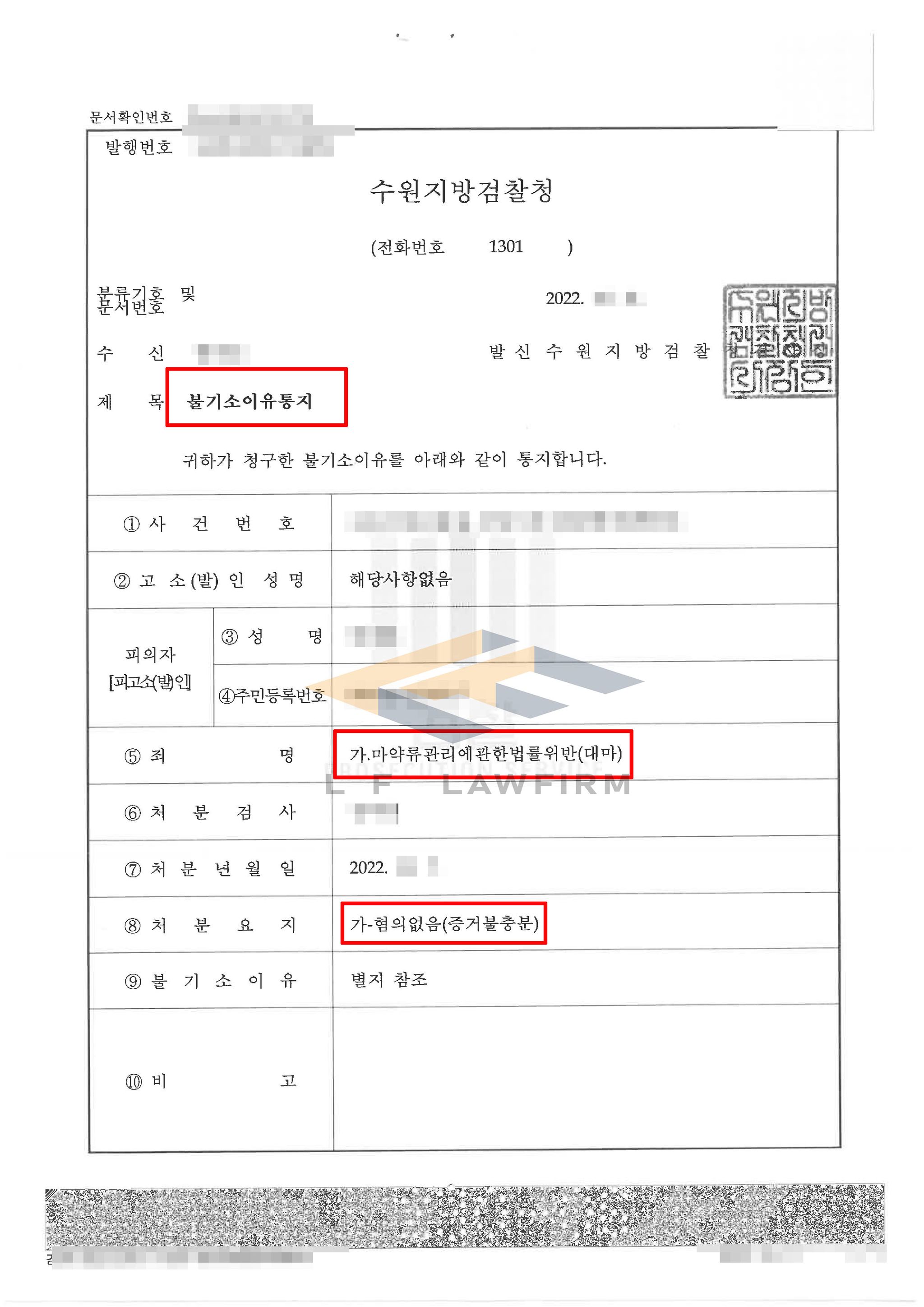 의뢰인과 상담을 한 후 어떤 경위로 클럽에서 대마를 얻게 되었고 흡연을 하게 된 것인지 확인을 해보았고 1회 경찰 진술 내용을 정보공개청구를 통해 확인 후 모발감정서와 시기적으로 일치하는 것이 맞는지 등을 강조하는 내용으로 변호인의견서를 준비하여 제출하였습니다. 이후 담당 수사관 면담과 담당 검사 면담을 거쳐 최종적으로 무혐의처분을 받고 혐의를 벗을 수 있었습니다.