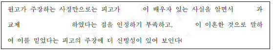 원고 측에서는 이미 저희 의뢰인이 원고의 배우자가 유부남인 사실을 알면서 교제하였다고 주장하였으나 저희 측은 원고 배우자가 자신이 의뢰인에게 자신을 이혼남이라고 속인 증거들과 기타 정황 증거들을 제출하면서 도저히 알 수 없었다고 반박하였습니다.