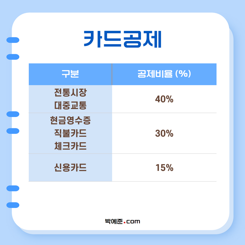 만약 아직 총소득의 25%를 초과하는 금액이 많지 않다면, 혜택이 많은 신용카드를 집중적으로 써야하고, 소비가 많았다면 공제율이 높은 체크카드를 쓰는 것이 유리합니다.