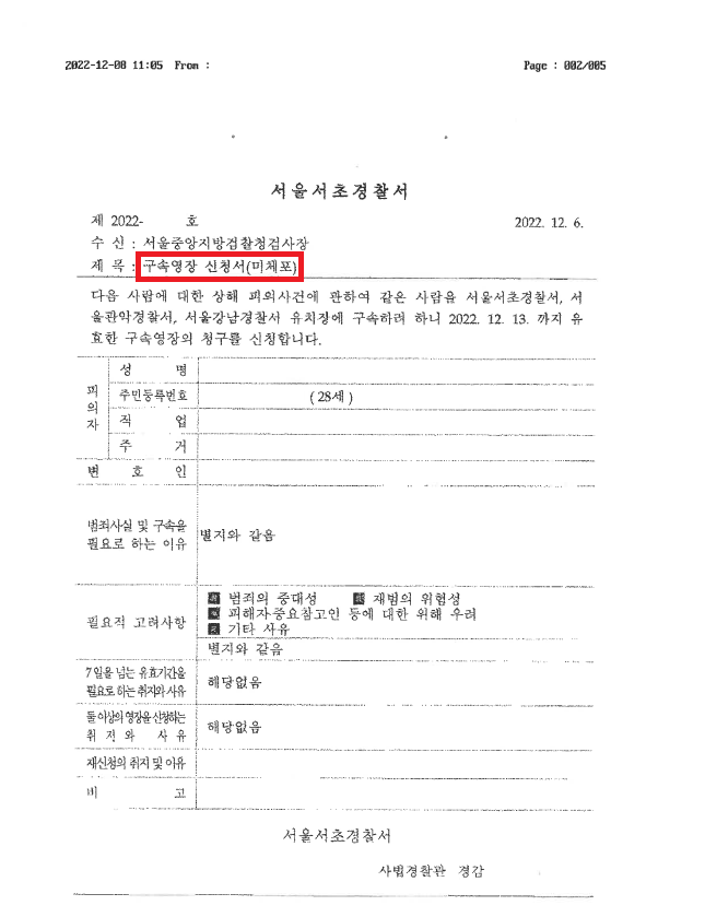 ② 담당 수사관에게 연락하여 구속영장 신청서를 확보하여 면밀히 검토하였습니다.