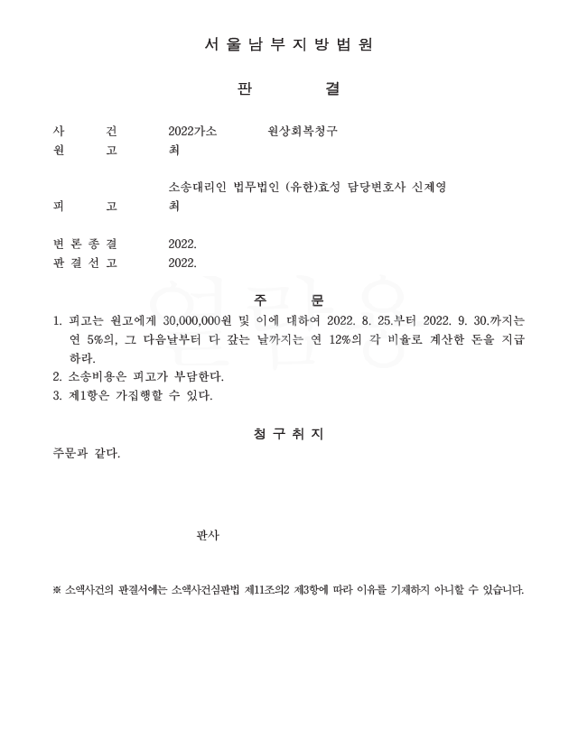 ![[원상회복] 도급계약을 해제하고 지급한 대금 전액을 반환받음](/_next/image?url=https%3A%2F%2Fd2ai3ajp99ywjy.cloudfront.net%2Fuploads%2Ftitleimage%2Foriginal%2F5f10144ca2f0f301e1483ea5-original.jpg&w=3840&q=75)