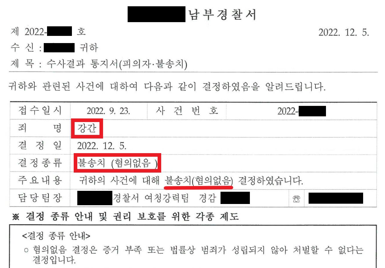 매우 다행히도 수사관님이 변호의견서 내용을 모두 받아들여, 경찰단계 불송치 처분하였습니다. A는 사건 발생 3개월만에 일상으로 돌아갈 수 있었습니다.