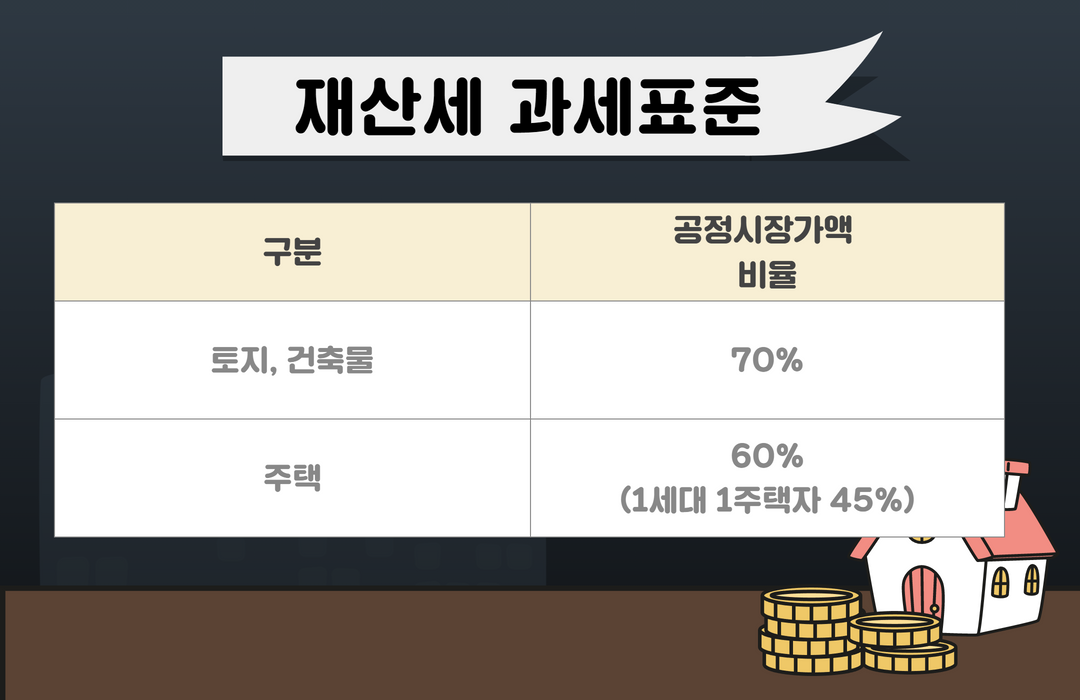 재산세 과세표준은 위와 같은 방법으로 계산되며, 과세표준에 세율을 곱하면 납부세액이 됩니다.