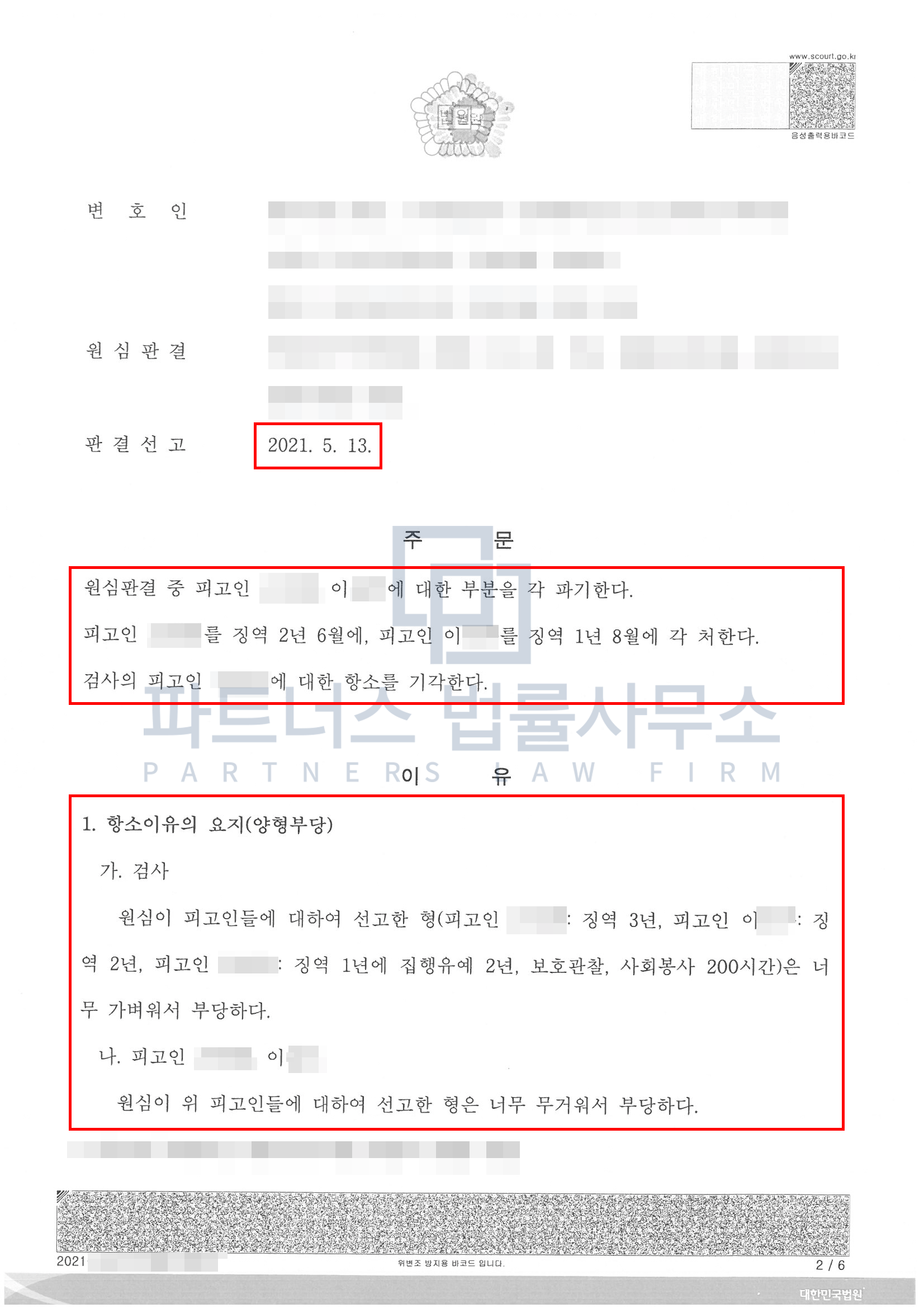 피해자가 24명에 달하고 피해금액도 억 단위가 넘어서 도저히 합의를 볼 수 없는 상황이었지만 2년은 너무 과한 것 아니냐는 가족들의 요청으로 저희 파트너스법률사무소가 항소심을 진행하였고 추가적인 합의 없이도 다른 사정변경 상황을 만들어 내어 4개월의 감형을 이룰 수 있었던 사안입니다.