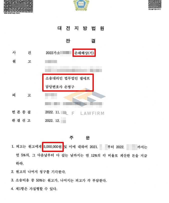 일반적인 사건보다 조금 더 높은 위자료 500만 원 인용