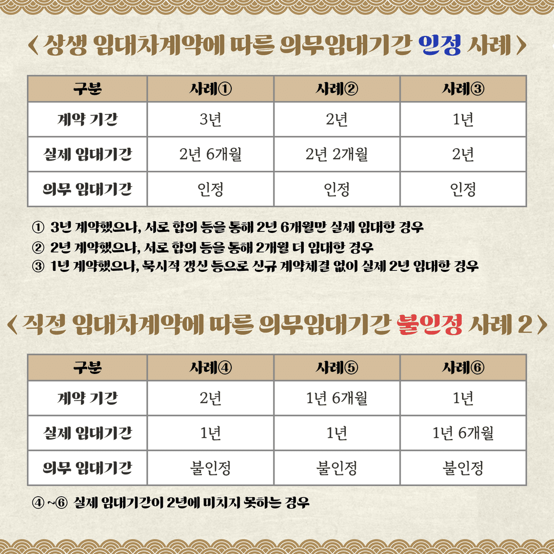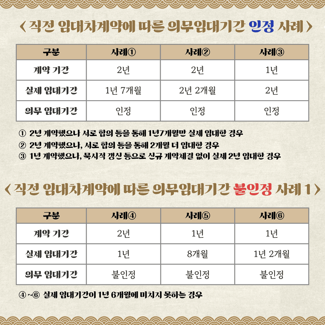 Q. 직전 임대차계약에 따른 의무임대기간 1년 6개월과 상생임대차계약에 따른 의무임대기간 2년은 어떻게 판정하나요?
