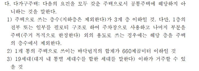다가구주택이란 세대 수가 19세대 이하 등 건축법 시행령 별표1 제1호 다목에 해당하는 주택을 말합니다.