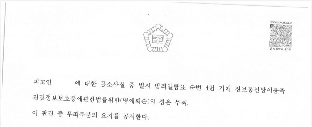 다음 포스팅에서는 그 사건에 관하여 말씀드리고 위 사건과 비교하면서 공연성(전파가능성)에 관하여 좀 더 자세히 말씀드리도록 하겠습니다.