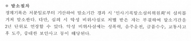다만, 심의 시 악성 비위사실로 처벌 받은 자는 부결하여 말소기간을 2년 단위로 연장할 수 있습니다.
