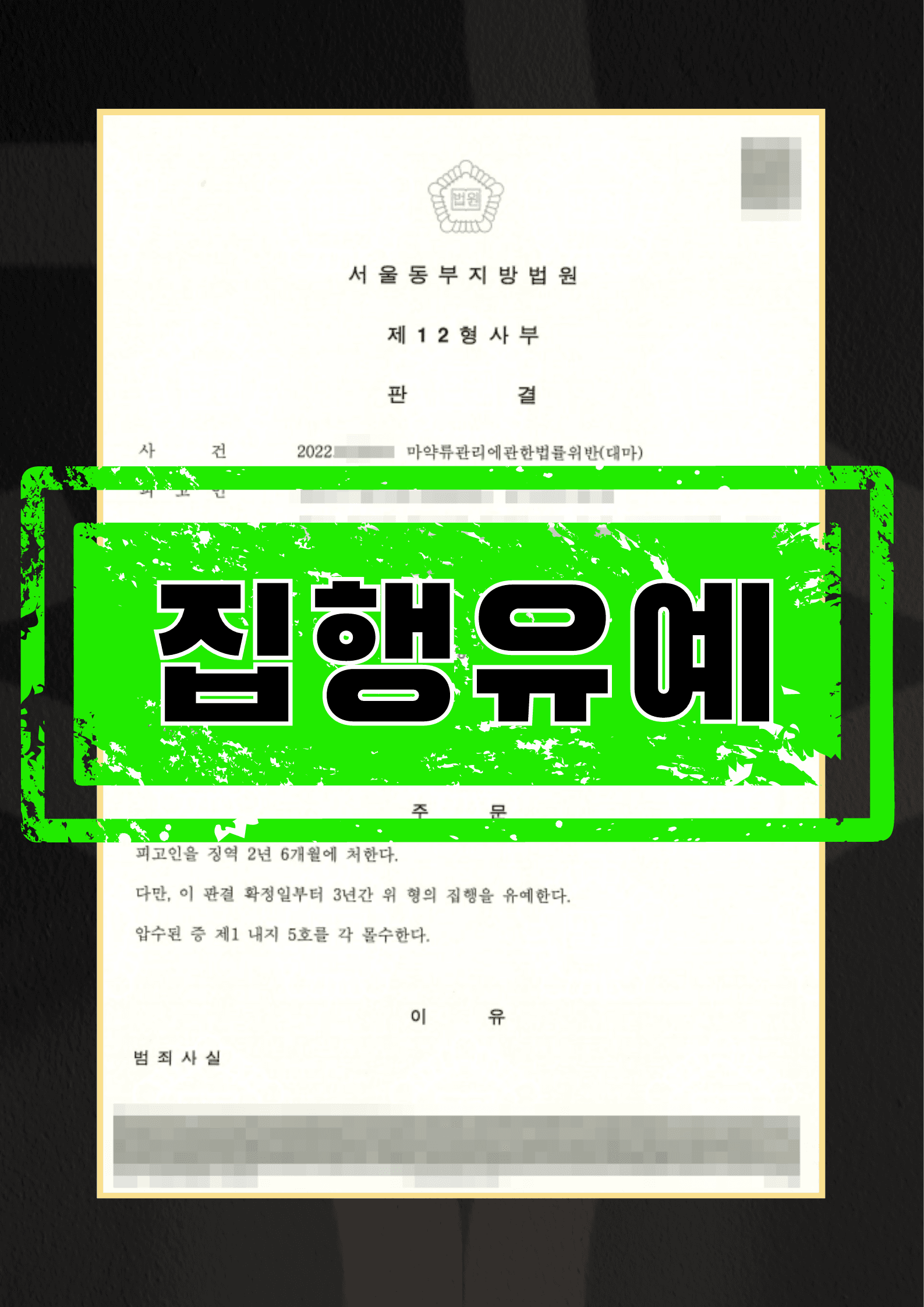 이에 온강의 변호인은 검찰단계에서 대마 밀수 혐의에 대해 모두 인정하면서 대마 흡연 범죄사실이 추가로 인지되지 않도록 조력하여 일단 대마 밀수 혐의로만 기소되도록 하였고, 재판단계에서는 온강의 마약사건 양형자료를 한 달간 철저하게 준비, 제출하여 밀반입한 대마의 양이 상당함에도 불구하고 법원으로부터 집행유예 판결을 선고받을 수 있었습니다.