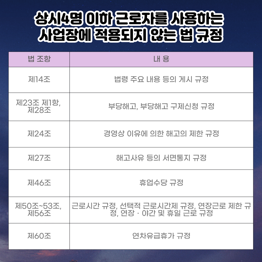 「 상시 4명 이하 사업장 근로기준법 미적용 규정 」