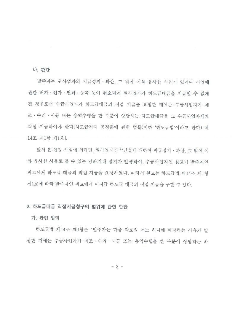 그런데 하도급거래 공정화에 관한 법률에서는 하수급사업자의 발주자에 대한 공사대금 직불청구권을 인정하고 있는 바, 위 권리를 행사하기로 하고서 하도급대금 직불요청이 기재된 내용증명우편을 보냈습니다.