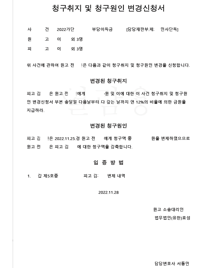 저는 즉각 입금 받은 자를 피고로 하여 민사소송 부당이득반환청구소송을 제기하였고 소장을 받은 피고는 저희에게 연락하여 자신이 받은 피해액을 반환할테니 소를 취하해달라고 요청하여 저희는 피고로부터 피해액을 입금받았습니다(이 사건은 피고가 분할 납부를 요청하여 납부받은 액수만큼 청구취지를 감축하고 피고가 전액 납부한 경우 소를 취하하기로 하였습니다).