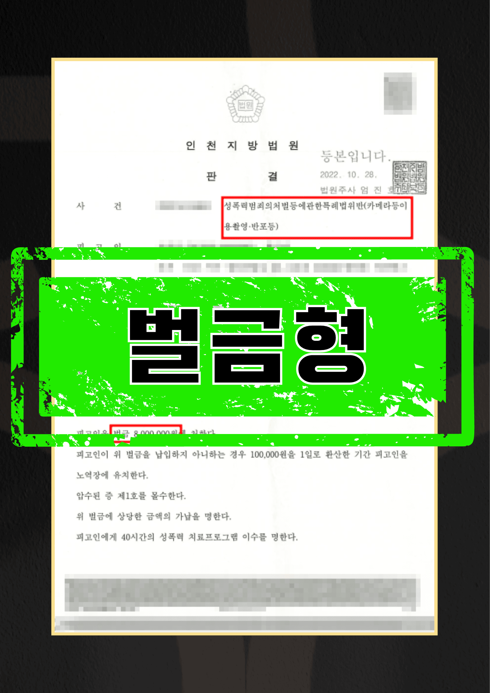 재판장님께서는 공판기일때 구체적 행위태양과 공공장소내에서 강제추행 전력을 보시고는 선처가 곤란함을 언급하기까지 하셨으나, 온강은 의견서를 통하여 꾸준한 정신과 진료를 통하여 재범의 위험성이 낮다는 점, 피해자와 합의하고자 하나 신원이 파악되지 않아 어떻게든 사죄하는 마음으로 여성단체에 일정 금원을 기부하는 점, 벌금형 초과 형선고시 직장에서 퇴사처리되어 수명의 부양가족의 생계가 곤란한 점을 강조드렸고, 공판 후에도 회사 취업규칙, 정신과 최근 치료현황 등 자료를 통하여 이를 다시 강조드렸습니다.