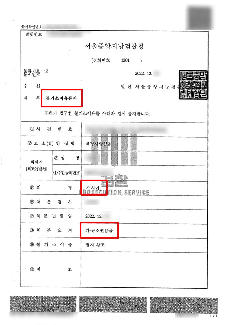 검찰은 법률사무소 로진의 주장을 전면적으로 인정하여 불기소 결정을 하였습니다. 위와 같이 공소가 제기되었지만 적법성에 의문이 드는 상황이라면 변호사의 조력을 통해 위기를 벗어나시기 바랍니다.