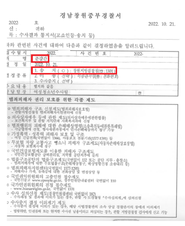 기소 의견 송치 (현재 검찰 단계)