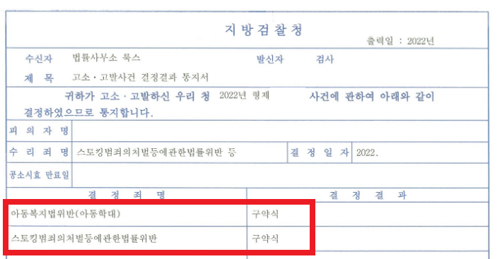 안녕하세요. 오늘은 스토킹처벌법위반 및 아동복지법위반(아동학대) 고소에 성공하고,