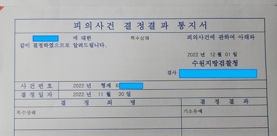 이후 검찰단계에서 위 양형사유들 및 참작할만한 범행 경위 등을 잘 정리한 변호인의견서 제출을 통해 최종적으로 최상의 결과인, 검찰단계 '기소유예' 처분을 받을 수 있었습니다.