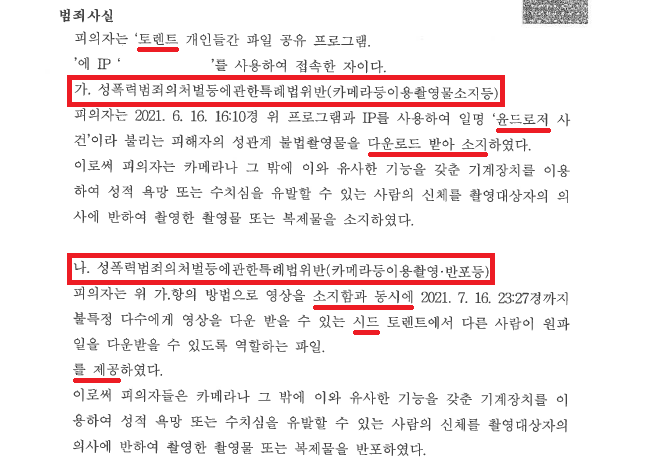 A씨는 토렌트에서 가끔씩 야동을 다운로드받았지만 문제가 될 만한 아청물이나 불법촬영물을 다운로드받은 기억은 전혀 없었습니다. 그런데 갑자기 불법촬영물, 그것도 최근 대대적으로 수사가 이루어지고 있는 '윤XXX'가 촬영하여 유포한 '돈XXX' 불법촬영물이라고 하니 너무나 당혹스러웠습니다.