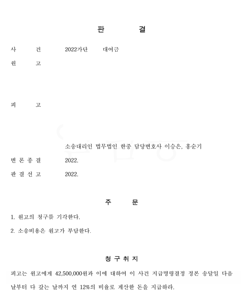대여금 전부승소