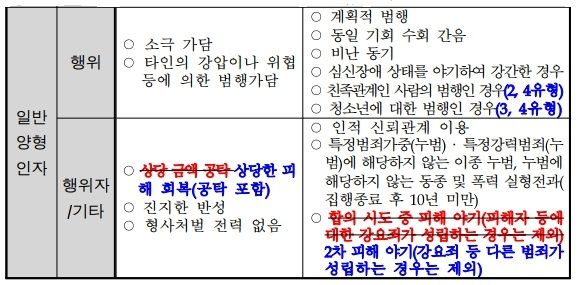 ※ 각 양형인자는 양형위원회의 정의에 따랐으며 일부는 부연설명을 하였습니다.