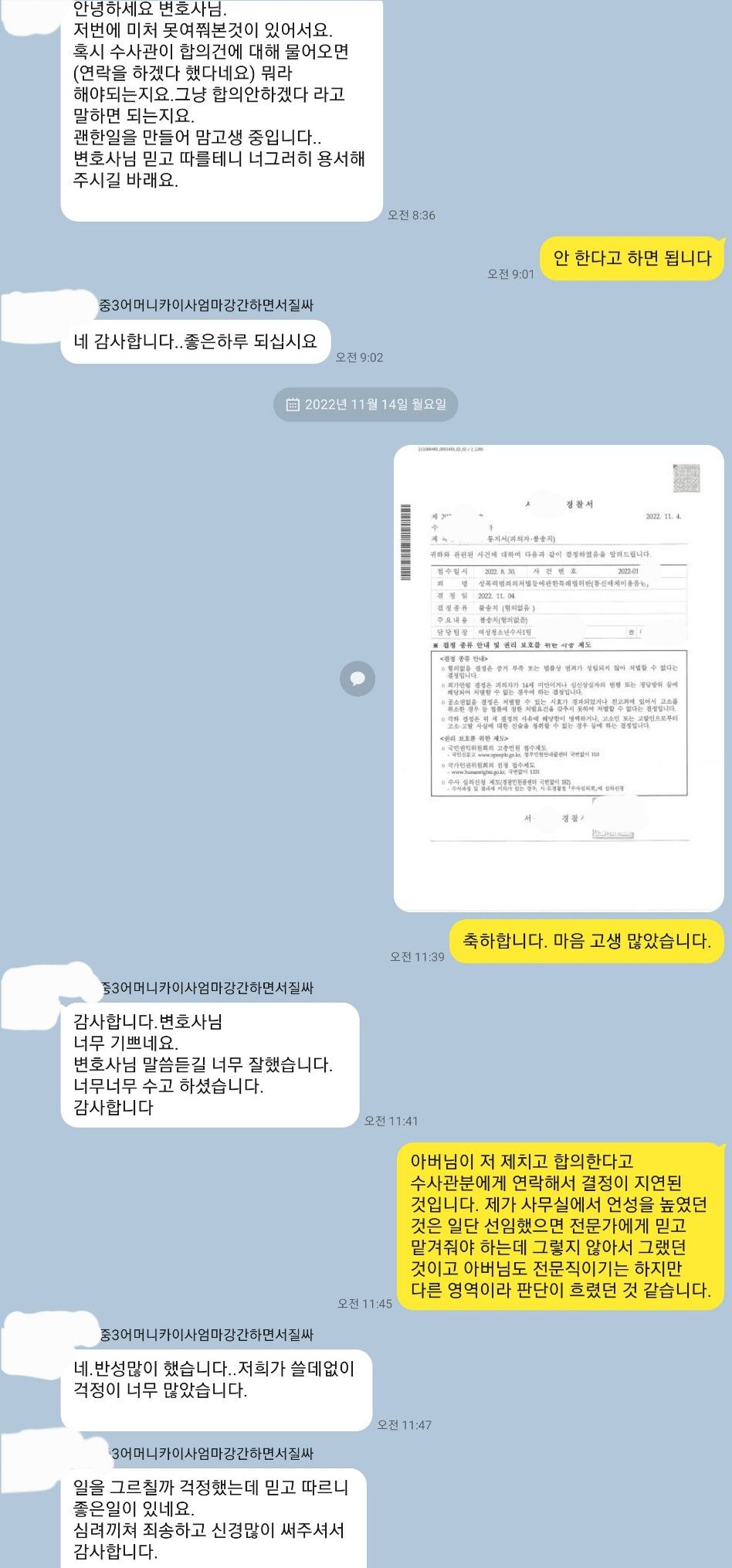 의뢰인이 보낸 채팅 내용은 위 불기소이유서에 나온 바와 같습니다.