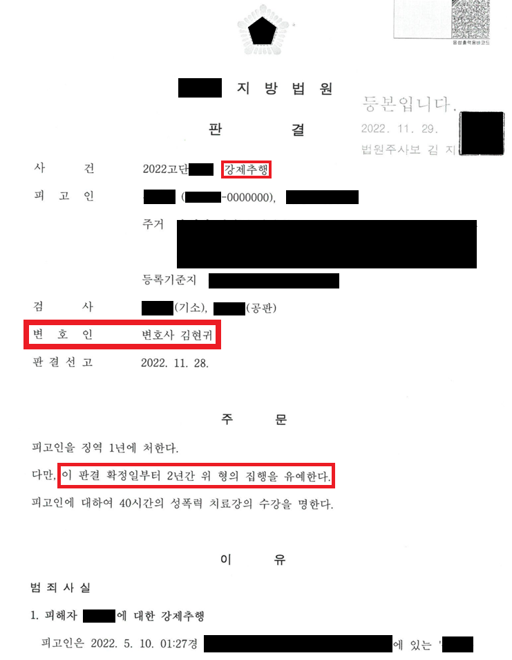 피해자가 두 명이고 추행의 정도가 심각한 점, 심지어 C의 경우 다시 현장으로 돌아와 재차 추행한 점으로 인하여, 죄질이 매우 불량하다고 판단되었습니다. 검사는 정식 기소한 후 2년의 실형을 구형하였습니다. 선고기일만 앞둔 상황에서 저를 찾아오게 되었습니다.