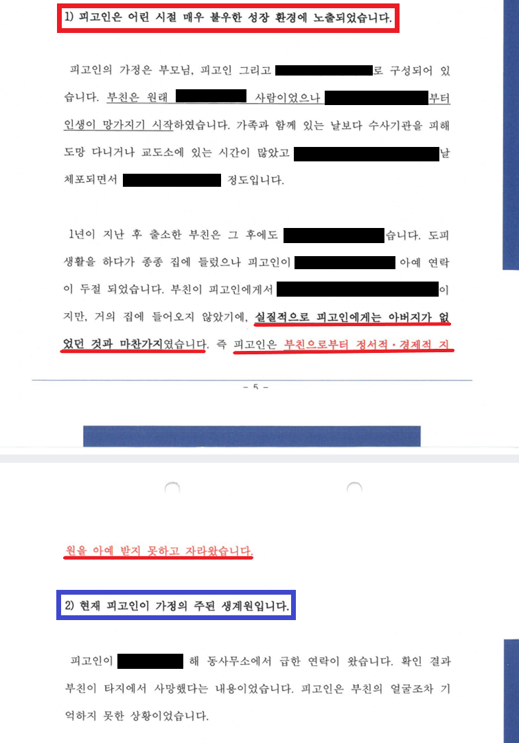 ③ 피고인은 어린 시절 부친이 여러 차례 교도소에 가거나 가정폭력을 일삼는 등 매우 불우한 성장 환경에 노출되었음.
