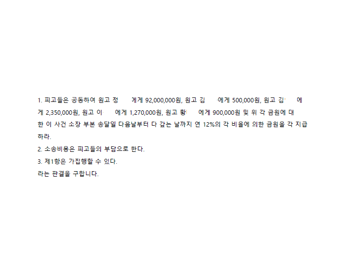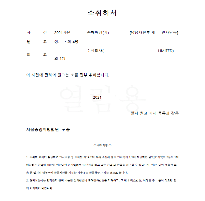 피고들은 피소 당하고 내용증명까지 받아 더 이상 회피가 어려우므로 의뢰인들에게 모두 출금 조치를 해주어 의뢰인들은 모두 피해 회복을 받았고 저는 소를 취하하였습니다.